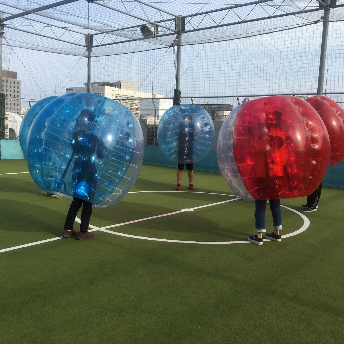 バブルサッカーとは巨大なバブルを装着して行うサッカーのことで、