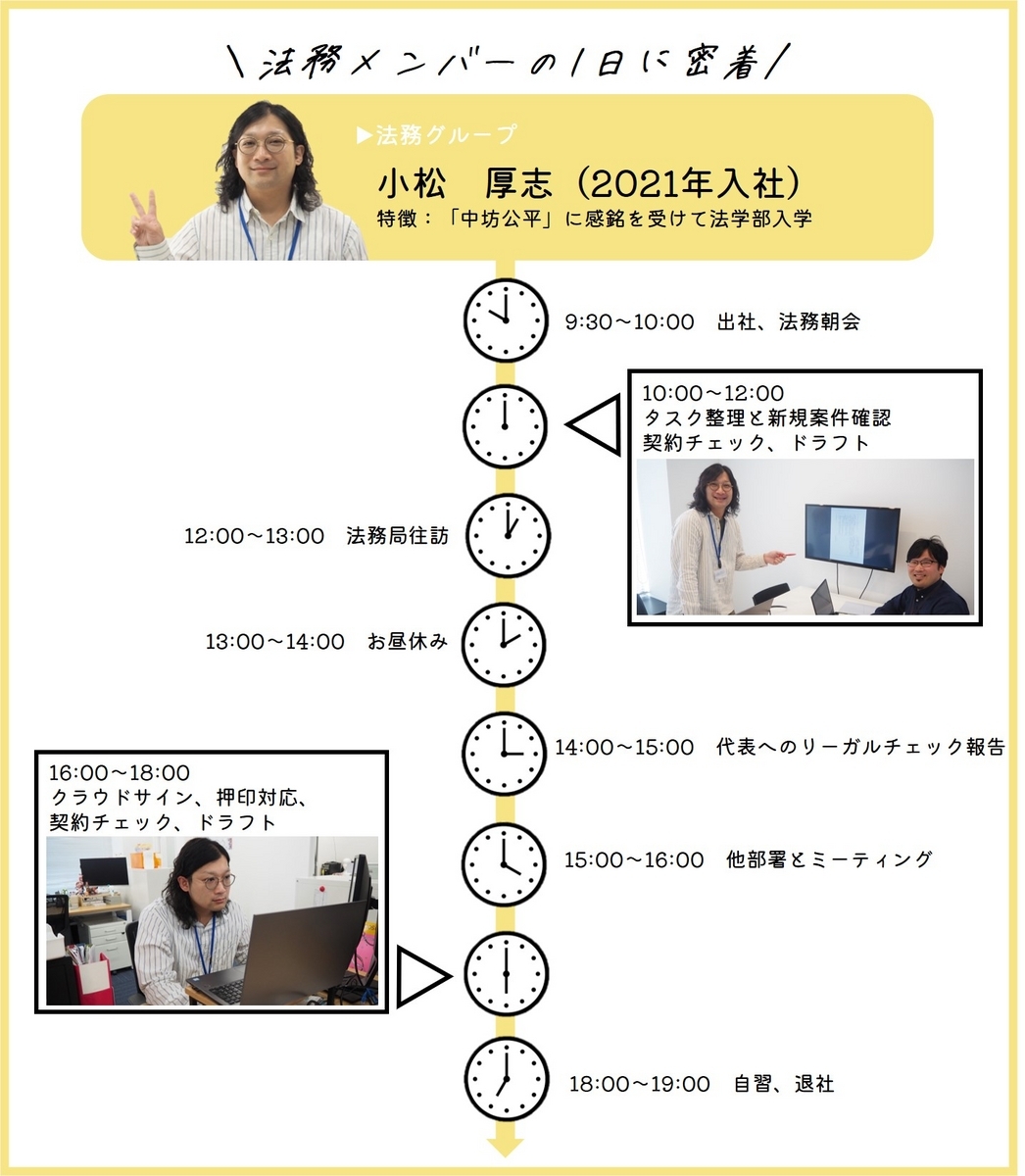他に法務部のメンバーがいない、一人法務ならではの少し荒っぽい方法だったと思います。それが可能だったのは、前職の営業と制作進行というコミュニケーションを大事にした経験があったからだと思います。
