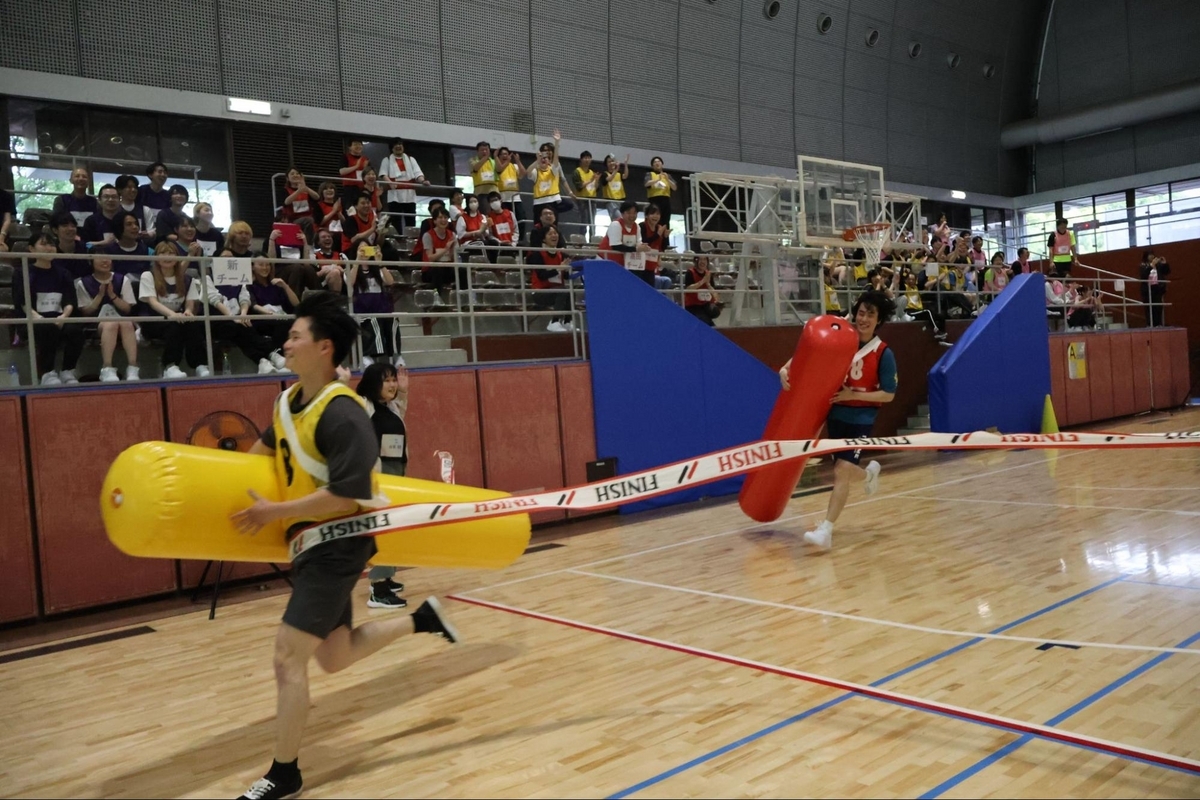 観客席からも「がんばれー!」や「いけー!」、「いけるいけるいける!」といった、応援や熱い声援が飛び交います。最終レースの結果は僅差で黄チームの勝利!大逆転ゴールをキメてくれました。
