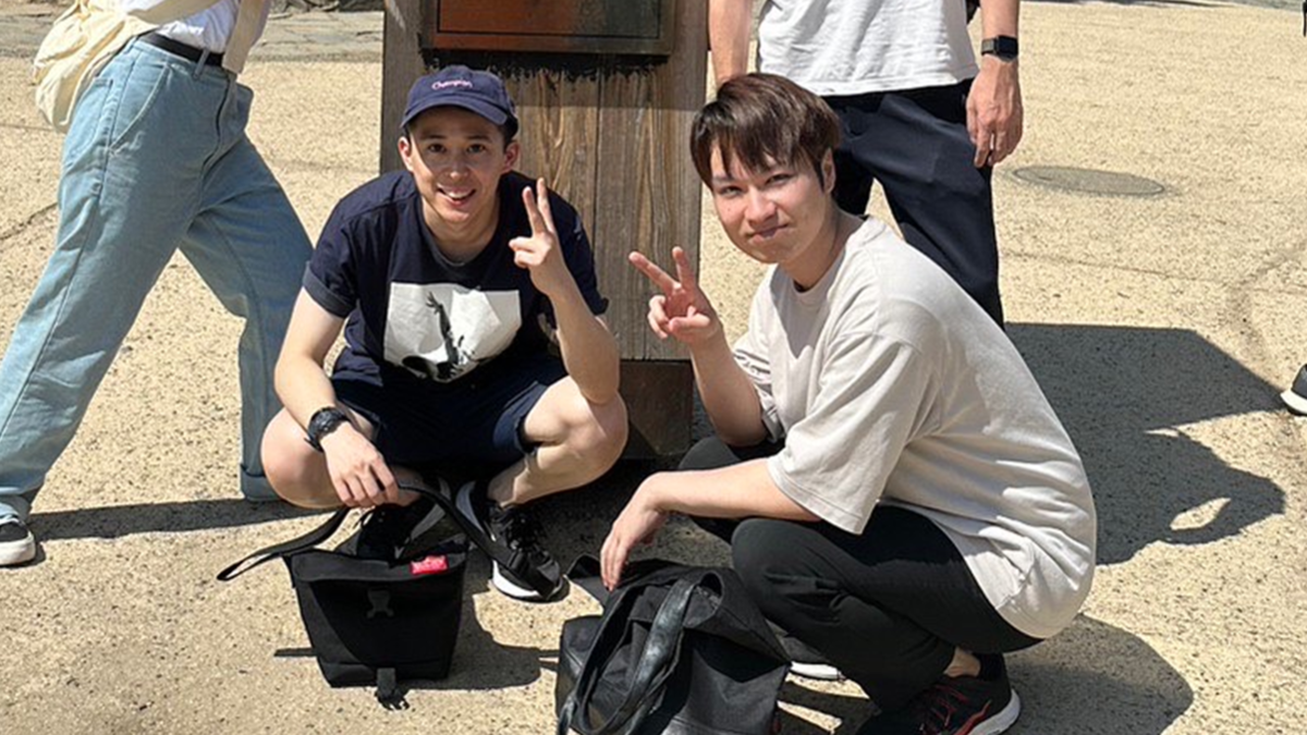 そうですそうです(笑)ジョブローテ-ションの際、「高尾山登りに行こうぜ」って誘われてから、”この人おもろ”ってなった気がします。人を楽しませようってことに全生命エネルギー使っていて、感心してました。
