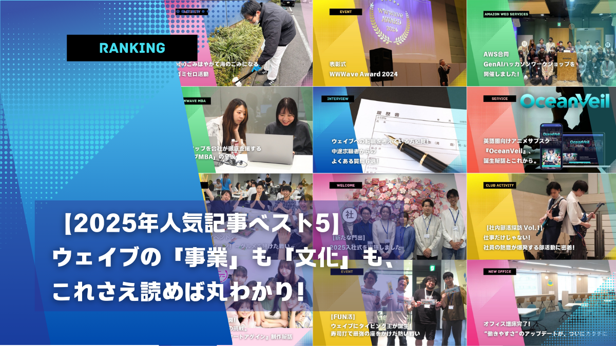 事業への熱い挑戦から、全力で遊ぶイベントまで。この5本の記事を通して、ウェイブの等身大の姿を感じていただけたら嬉しいです。